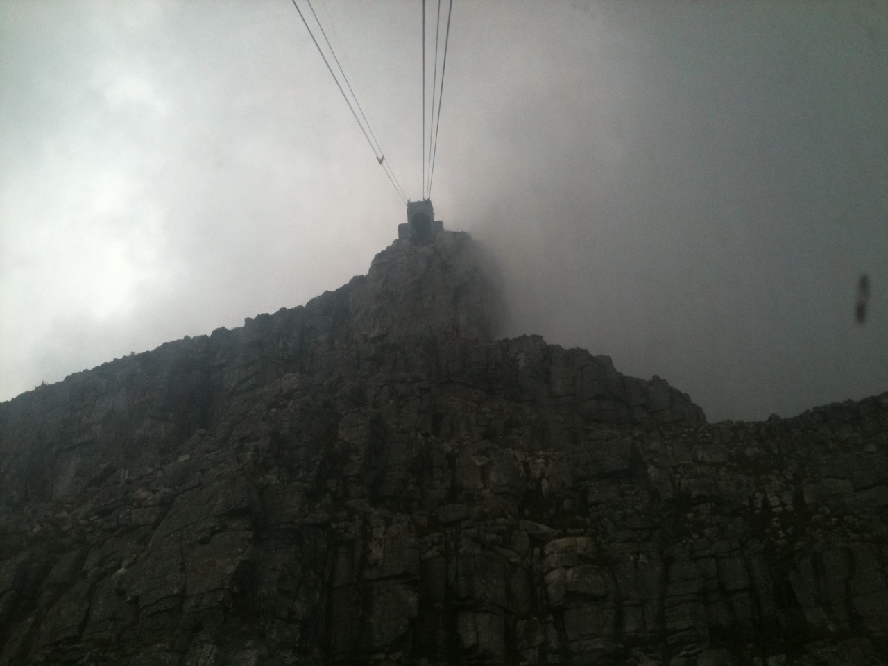 We are heading up Table Mountain to see what the view is like from over 1000 metres up. Cable car is currently winding it's way up the rock face!